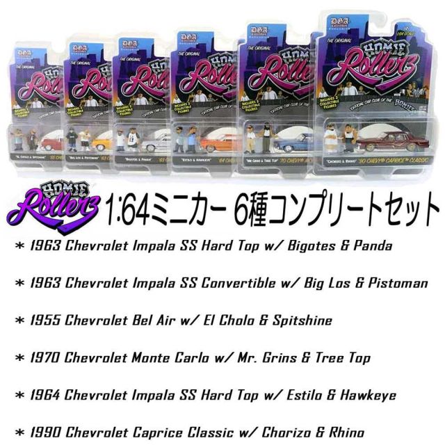 GreenLight x DGA /グリーンライト 1/64 ホーミーズ フィギュア付 ミニカー ローライダー Homie Rollers Series1 Asst (6台セット)